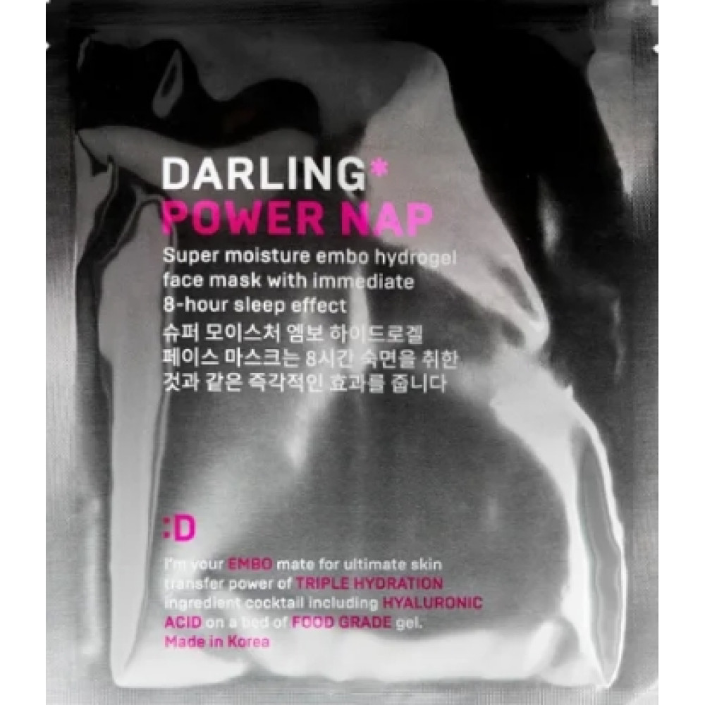Суперувлажняющая гидрогелевая маска с эффектом моментального восстановления Darling* Power Nap. Чтобы вернуть коже то, что ей нужно больше всего – влагу. Эта гидрогелевая маска, как глоток воды в пустыне или полчаса сна после бессонной ночи, поможет сухой и уставшей коже экстренно восстановить силы и взбодриться. Специальная формула геля позволяет гиалуроновой кислоте проникать во внутренние слои эпидермиса, насыщая их необходимой влагой и микроэлементами. Вашей коже нужен глоток свежести?