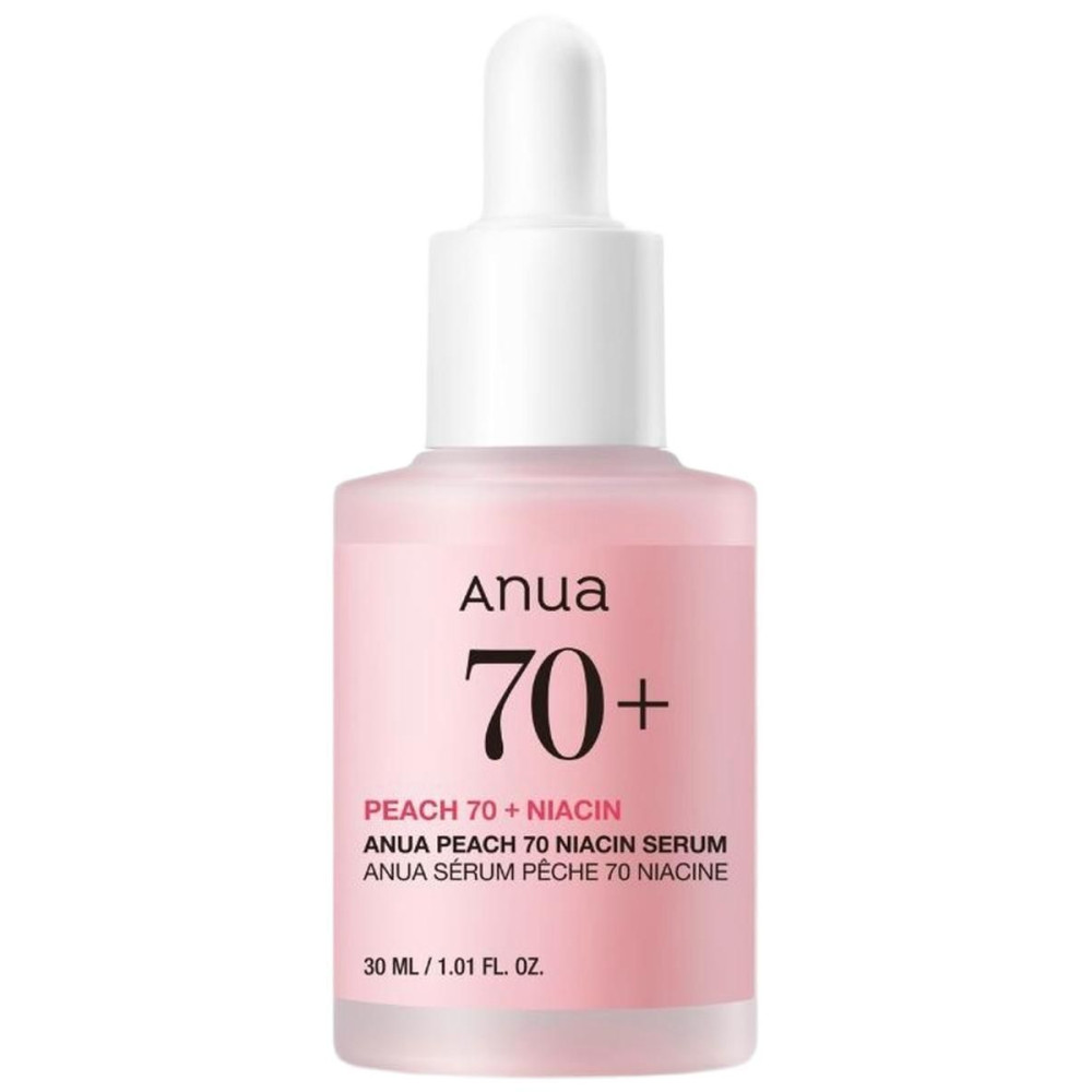 Сыворотка с персиком для гладкой и сияющей кожи Anua Peach 70% Niacin Serum обладает широким функционалом: выравнивает и полирует рельеф эпидермиса, способствует сужению пор, сокращает выработку кожного сала и мягко осветляет общий тон кожи.