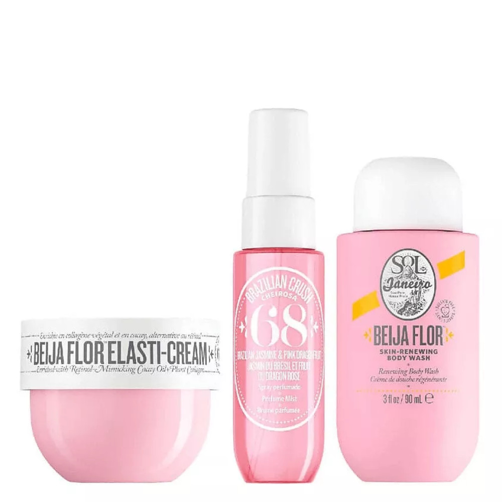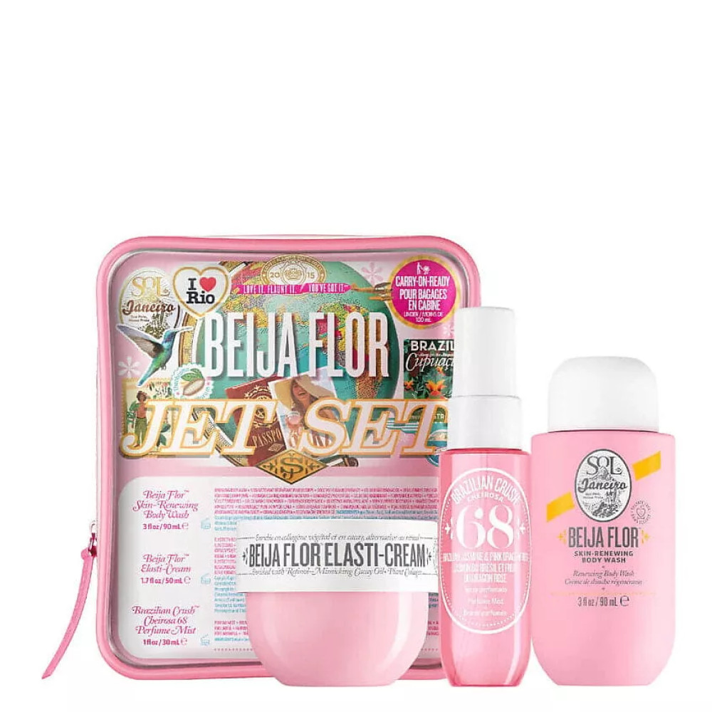 Beija Flor Jet Set — это идеальный дорожный набор, включающий три бестселлера Sol de Janeiro с экстрактом бакучиола и запатентованным комплексом Cacay Oil: крем для тела с коллагеном Beija Flor Elasti-Cream 50 мл + гель-крем для душа Beija Flor Body Wash 90 мл + мист для волос и тела Brazilian Crush Cheirosa 68 Perfume Mist 30 мл.
