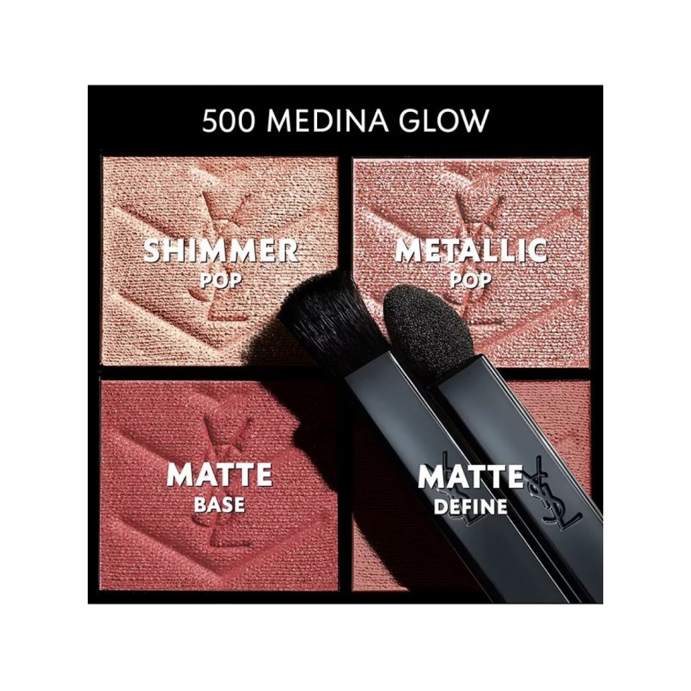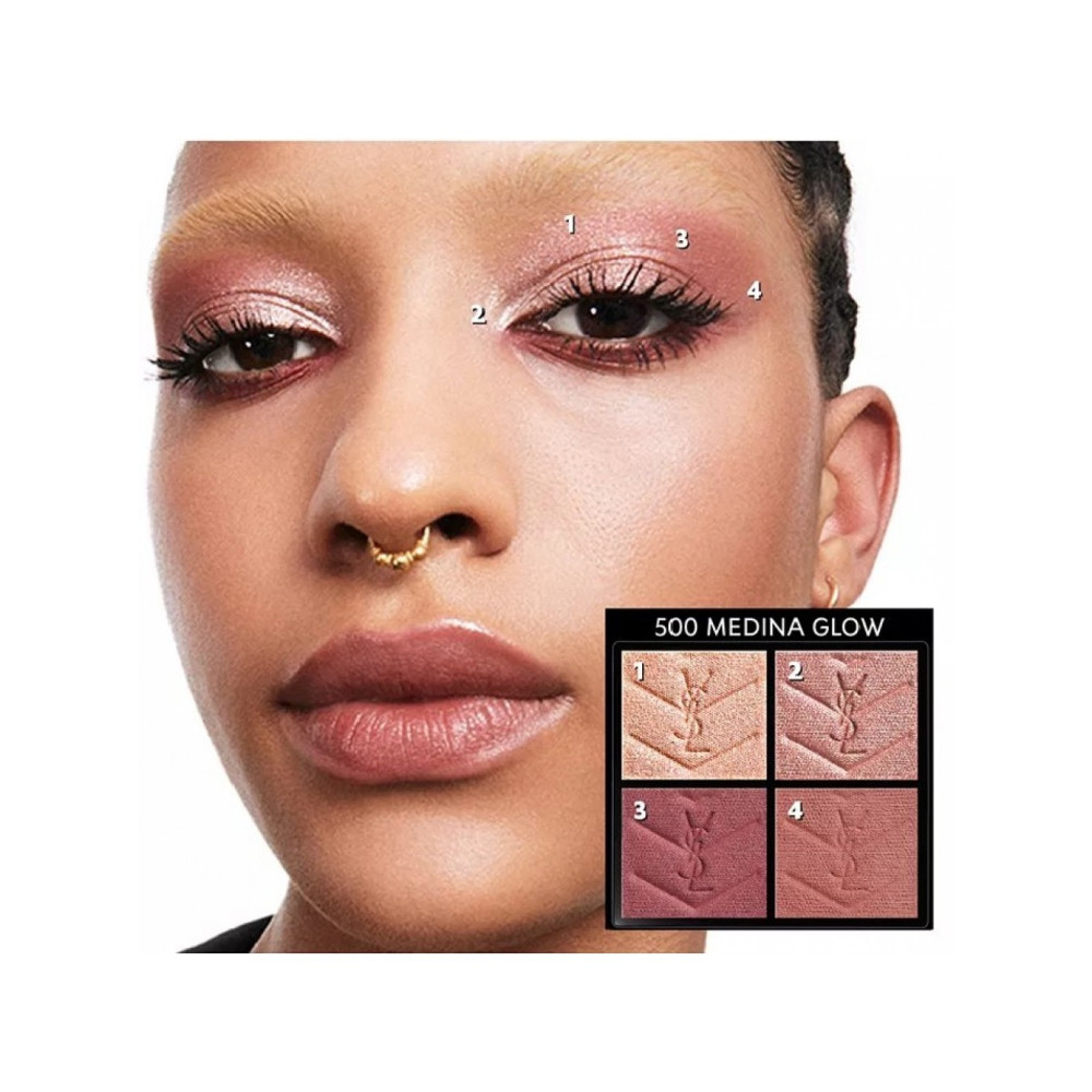 Мини-клатч Yves Saint Laurent Couture N500 Medina Glow придает сияние и свежесть лица. Кутюрная палитра YSL в культовом футляре с золотой оправой содержит четыре очаровательных розовых оттенка: сверкающий розовый, медно-розовый, румяный розовый и винтажный розовый.