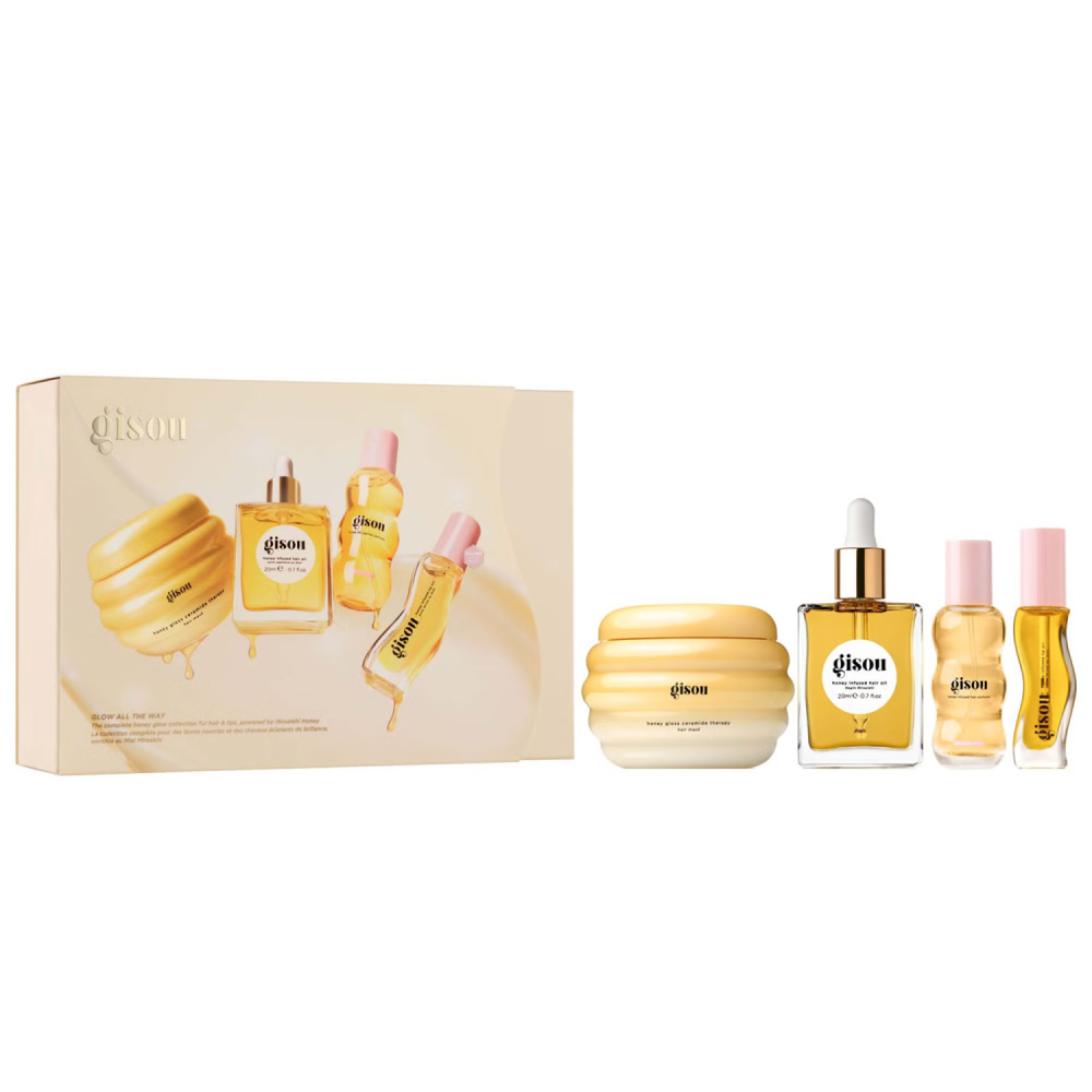Полная коллекция Honey Glow включает в себя лучшие продукты: увлажняющее масло для губ, мини-маску для волос, мини-масло для волос и мини-парфюм для волос из дикой розы – все с Mirsalehi Honey для увлажненных, блестящих волос и губ.