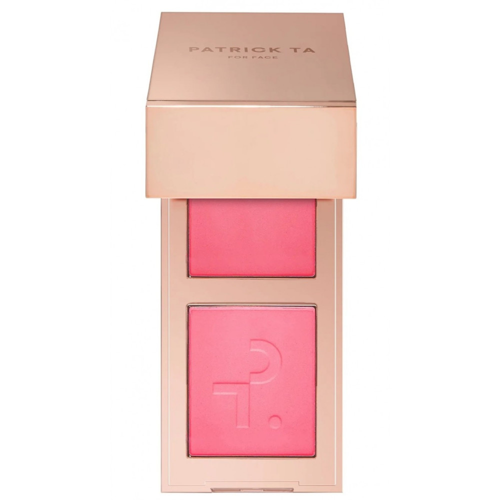 Воссоздайте дома эффектную технику нанесения румян от Патрика Та с помощью мини-румян Major Headlines Double-Take Crème & Powder Blush Duo в оттенке She's That Girl