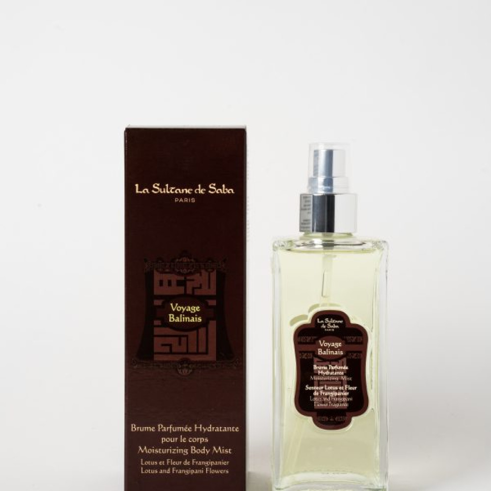 Воздушный и чувственный, увлажняющий ароматный «туман» предназначен для распыления на кожу и волосы. Его утонченная изящная текстура увлажняет кожу. Дополняя Ваш парфюм, придает бодрость в течение всего дня, дарит мгновенное ощущение благополучия и свежести, переносит в опьяняющий мир La Sultane de Saba. Может быть использован в качестве парфюма для постельного белья, создавая атмосферу спокойствия для полноценного сна. Аромат: Цветы Лотос и Франжипани